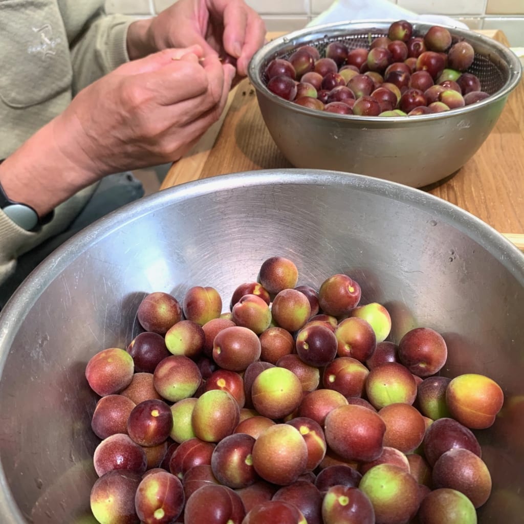 今回使うのは生協で購入した小梅「パープルクィーン」JA紀南1キロを水洗いしておきます
