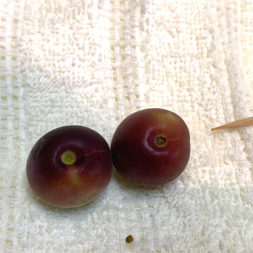 左がヘタを取った梅右がまだ取ってない梅