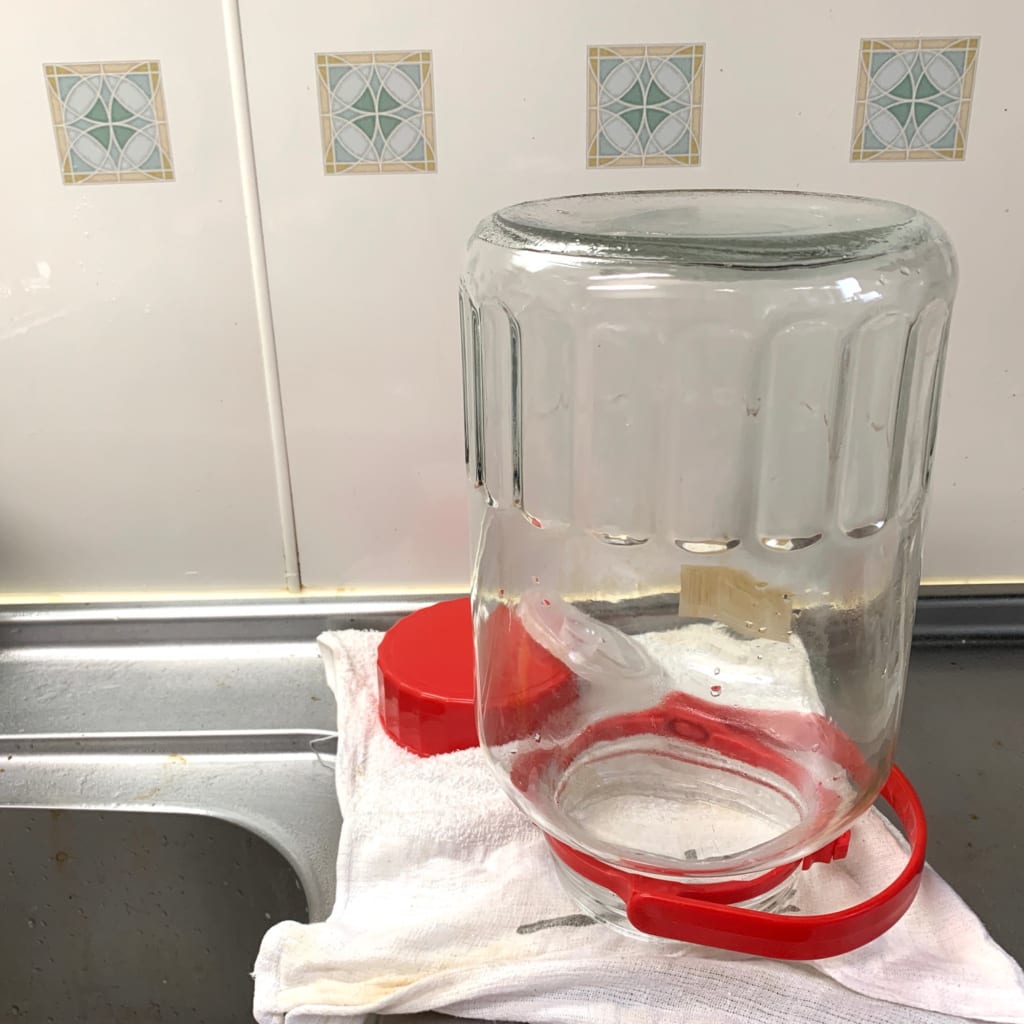 梅酒用の瓶を洗って熱湯で消毒しておきます
