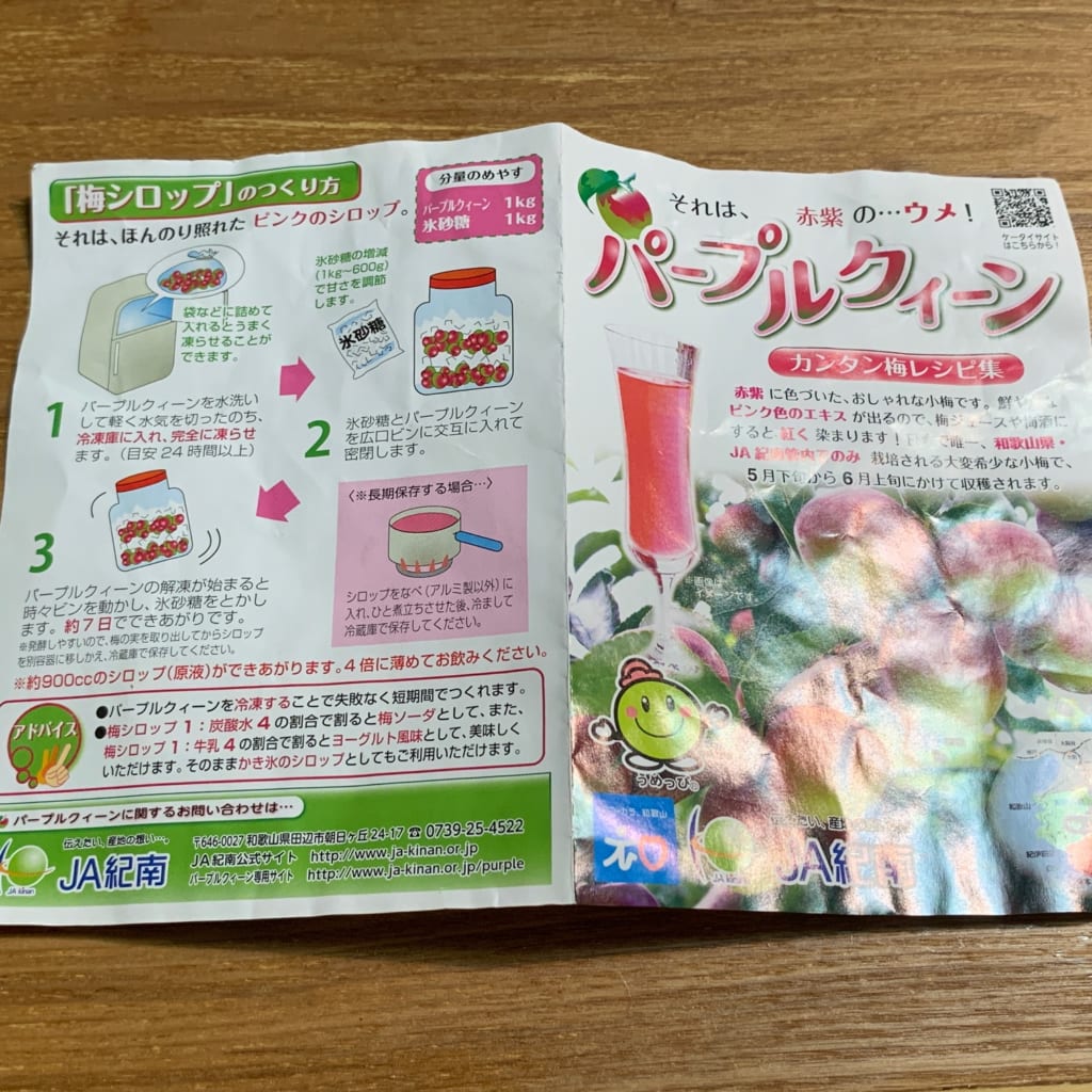 梅に入っていたJA 紀南の冊子に梅シロップの作り方が載ってました
