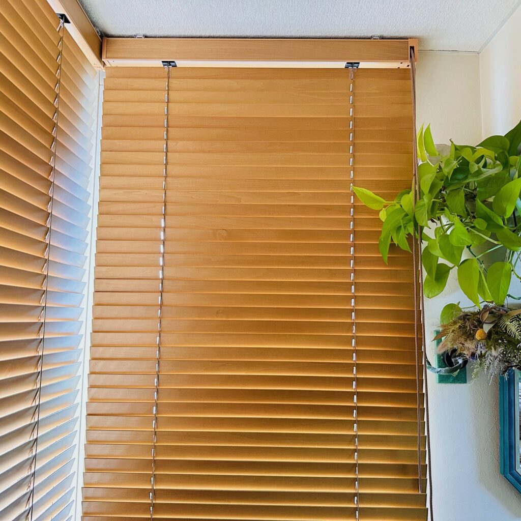 20数年前に設置したリビングのニチベイの木製ブラインドはさすがに経年劣化。。。今回取り替えました