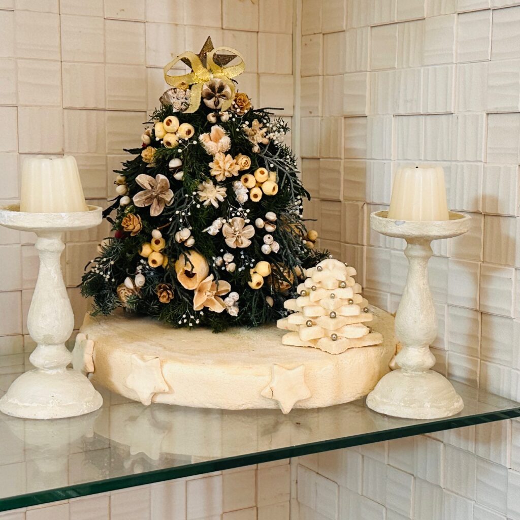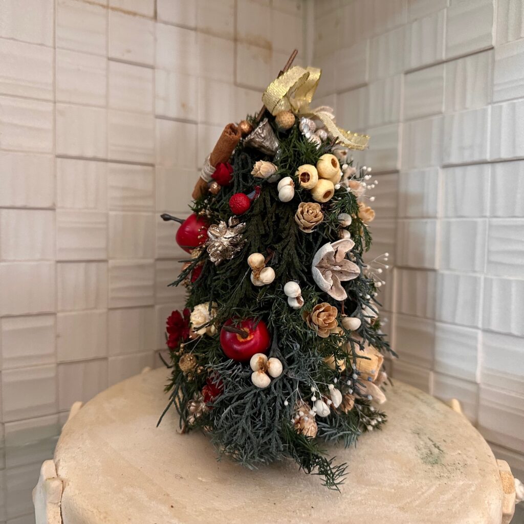 *こちらのミニツリーは接着しているドライフラワーの状態がよくないのでリメイクする予定です