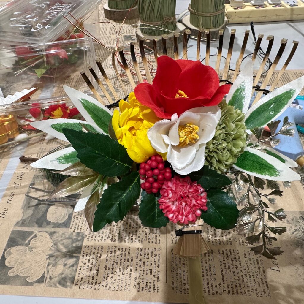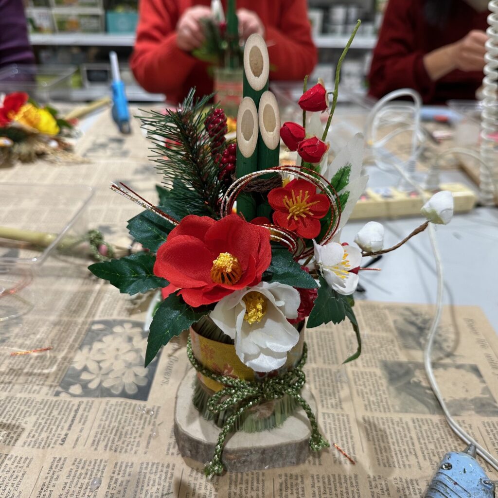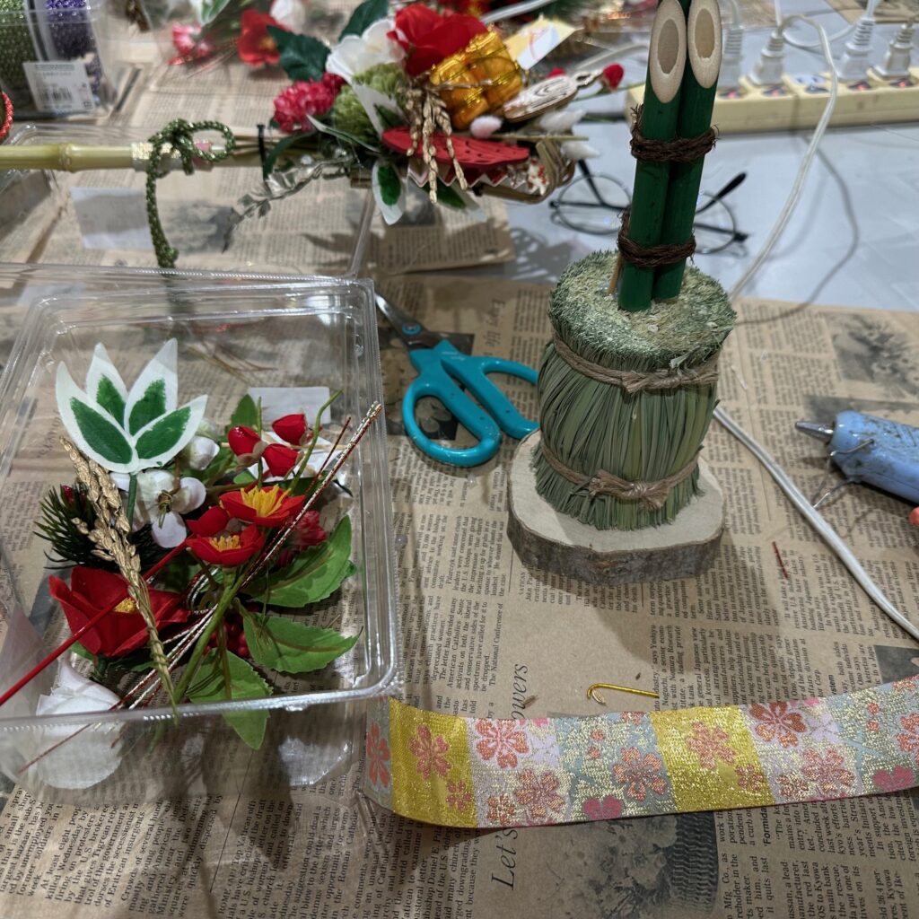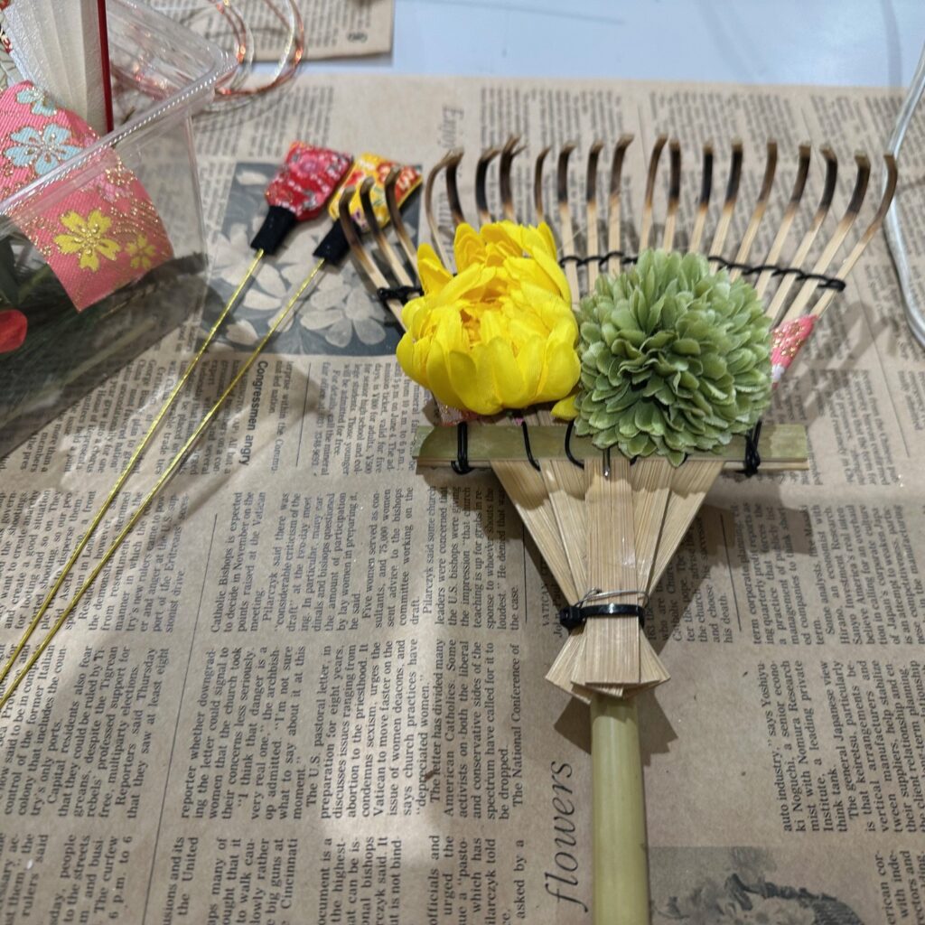 ハンズのワークショップを利用して新年に福を呼ぶ熊手とミニ門松のアレンジメントを作ってきました